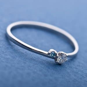 ダイヤモンド0.05ctの脇にはアイスブルーダイヤモンド0.01ctがセットされた可愛らしいプラチナリングです。