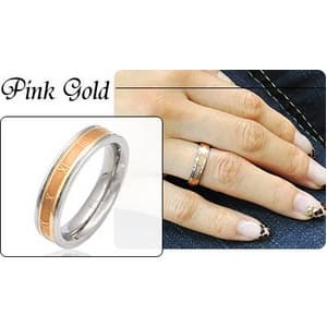 ステンレス製 アトラスラインリング ピンクゴールド 17号